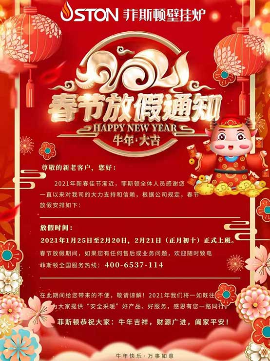 在此期間給您帶來的不便,敬請諒解!2021年我們將一如既往為大家提供“安全采暖”好產品、好服務,感恩有您一路同行。