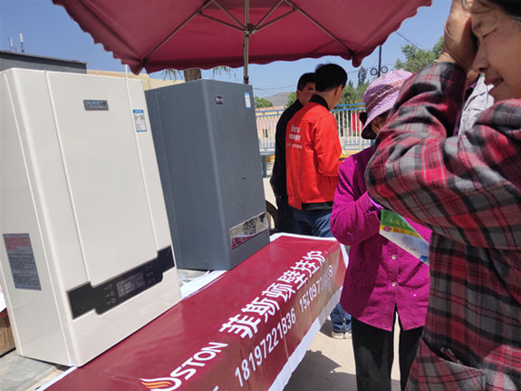2019年6月3日,正值炎炎夏日,同樣熱火朝天的銷售現場還出現在青海省樂都縣的一個村莊內。受國家煤改氣的影響,國家推行農村煤改清潔能源的政策,大力推進燃氣壁掛爐供暖,燃氣壁掛爐以其能同步兼顧生活熱水與采暖系統的一機二用的亮點,收到很多消費者的青睞。許多農村地區紛紛開始了解和購買燃氣壁掛爐以響應國家綠色環保的號召。