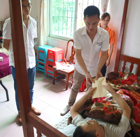 在溝通過程中,領導們親切地與黃本輝交談,詢問病情、治療及家庭的生活情況后,并鼓勵他一定要保持好心態,積極配合治療,戰勝病魔,爭取早日康復。黃本輝對菲思盾領導基金會成員的到來表示感激,菲思盾壁掛爐互助互愛、情真意切的大愛精神讓他感覺到非常溫暖;同時他也表示會積極配合醫生進行治療,爭取早日康復重新工作,與妻子繼續并肩同行。