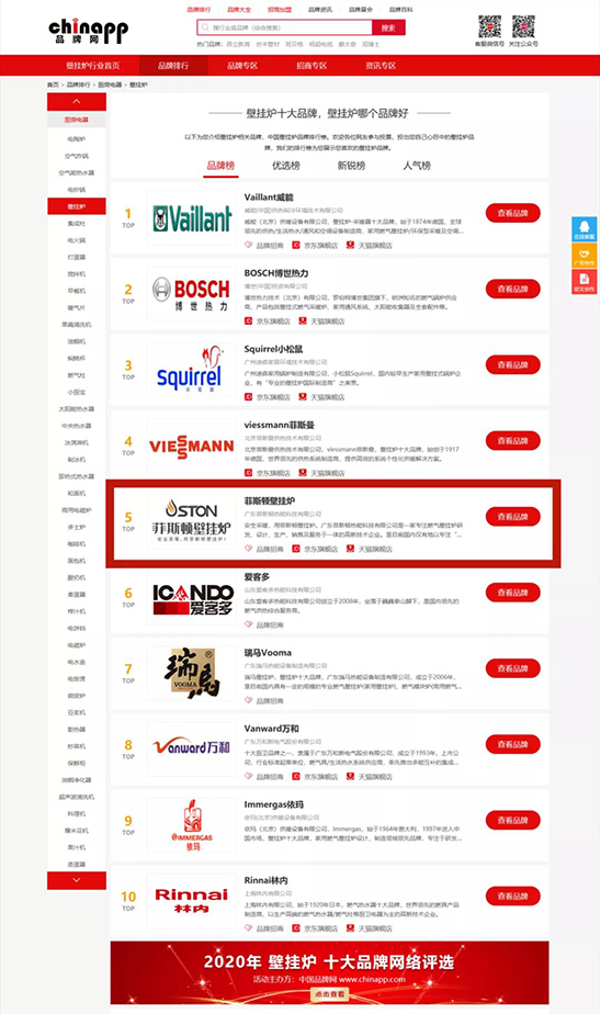 3月,獲《全國產品和服務質量誠信示范企業》、《全國燃氣壁掛爐行業質量領先企業》、《全國質量檢驗先進企業》、《全國質量信得過產品》等獎項和榮譽。