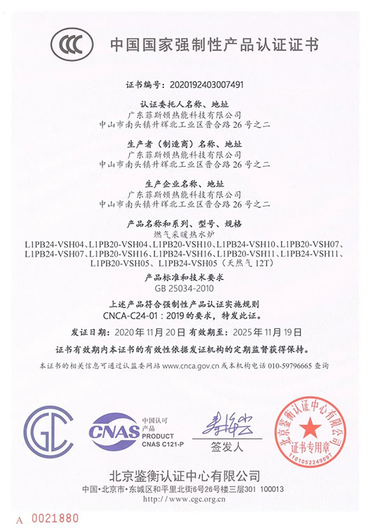 菲思盾壁掛爐全系列全功率都通過了3C認證,這代表菲思盾的壁掛爐生產、質量管理水平均符合國際標準要求。這不僅僅是對菲思盾壁掛爐產品質量的高度認可,更是意味著消費者在選擇菲思盾壁掛爐產品時,擁有了“國家級”的安全保障和背書,是證明菲思盾產品品質和安全有保障的有力憑證。
