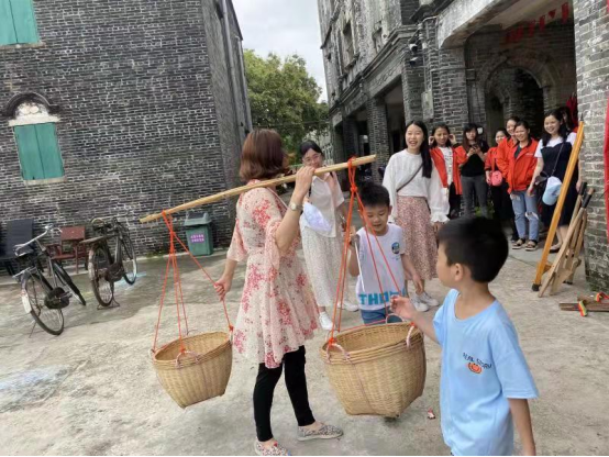 中午12點到達,公司員工聽著導游的指引,到達三泉灣廳內吃飯,里面的菜色各有特產,吃起來非常美味可口。飯后大家有時間就出去外面空地一齊騎單車,用起當地特色的用品在拍照,玩耍,大家都圍觀著看,小李對著小陳說道:“擔上兩個框,像極剛才從農田里工作回來。’聽完頓時現場人談笑風生,歡樂不斷。