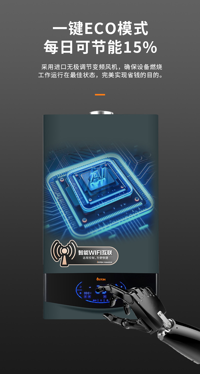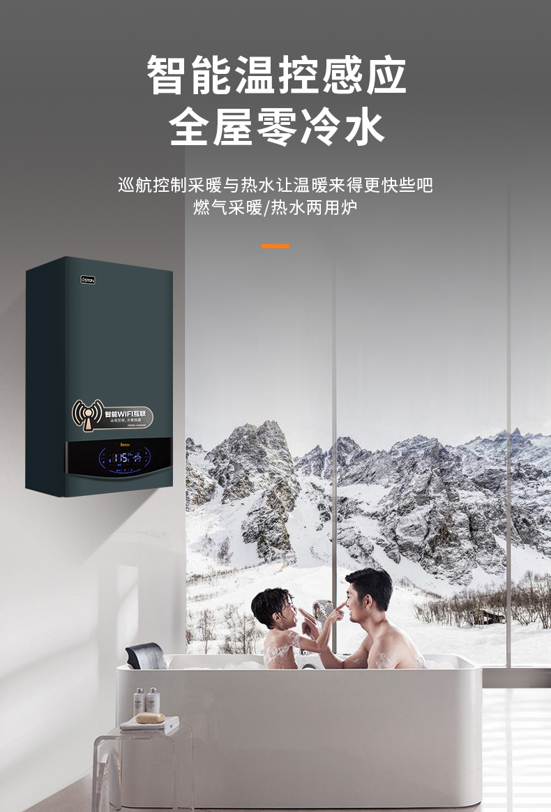 分段式燃燒,熱負荷調節比1:5,徹底解決夏季水溫過高燙傷安全問題。