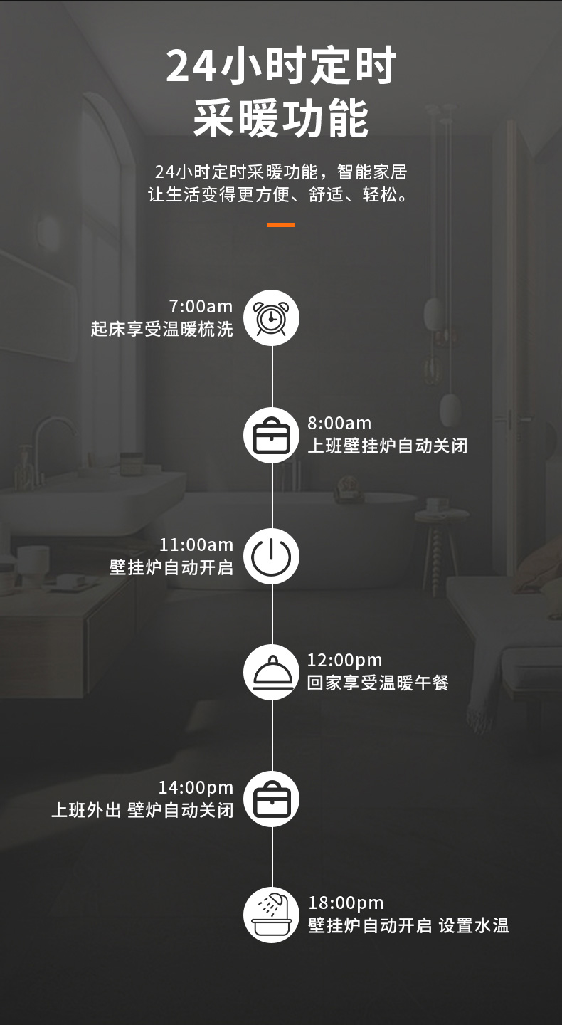自定義八時段定溫采暖功能,采暖季比常規模式節省燃氣